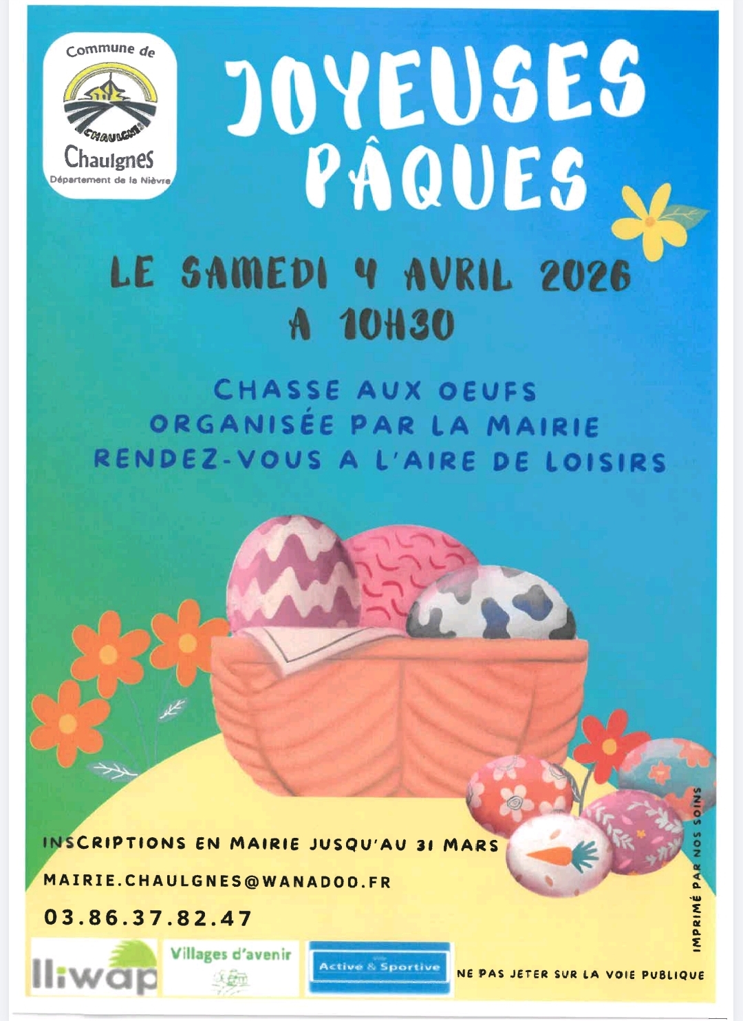 Chasse aux œufs : Les inscriptions sont ouvertes en mairie jusqu’au 31/03!