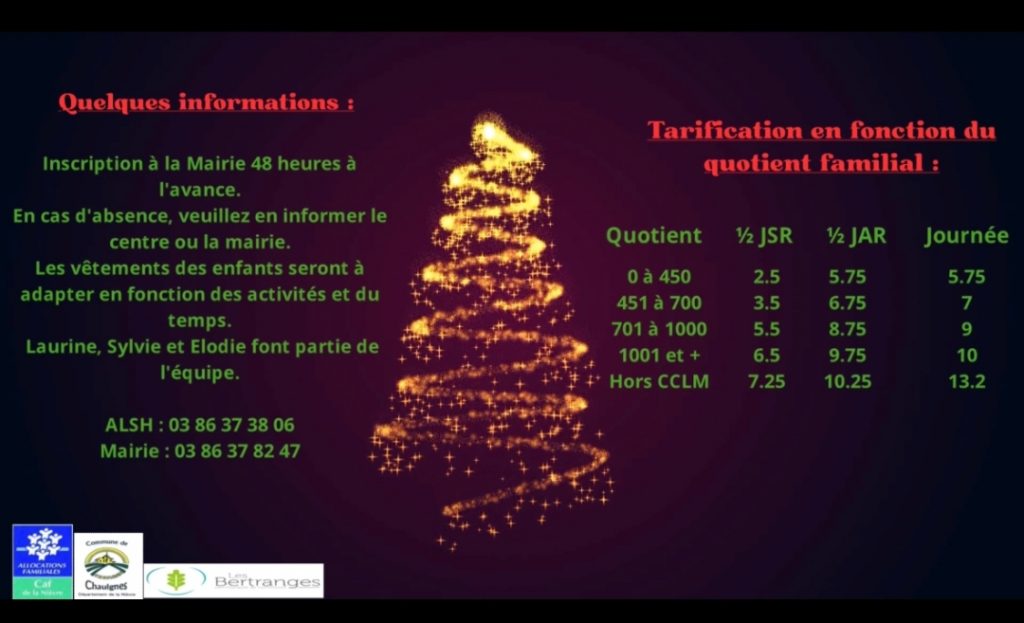 Afin d’améliorer la qualité du service rendu aux familles, à compter des vacances de Toussaint, les inscriptions au Centre de Loisirs pour les mercredis et les vacances scolaires se feront en Mairie de Chaulgnes. Elles sont ouvertes depuis le 26/09/2020.