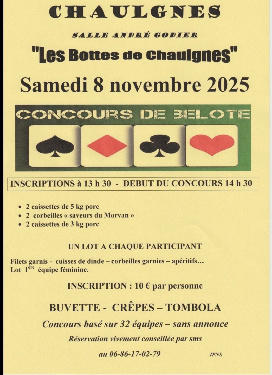Grand concours de belote organisé par votre association samedi 8 novembre